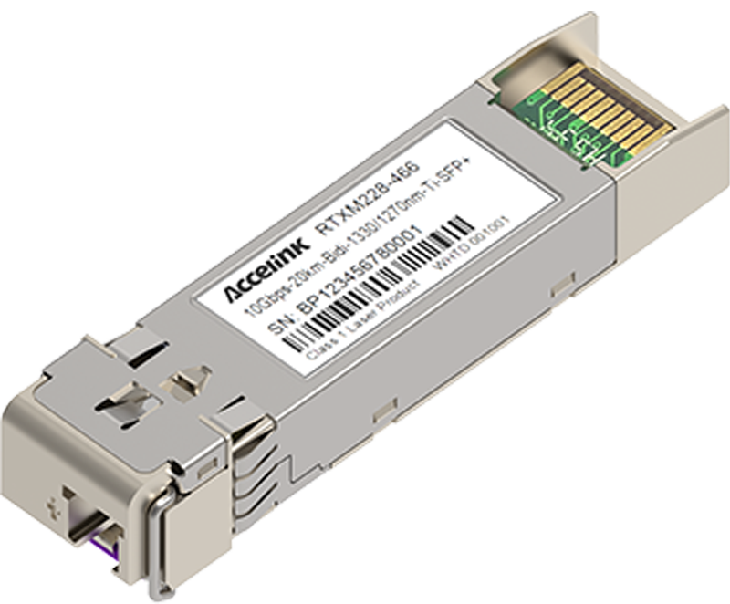 RTXM228-461/462 10Gigabit 1270nm/1330nm SFP+ transceiver modules are designed for use in wireless front-haul links on up to 10km of single mode fiber. They are compliant with the SFF-8472, 10GFC, FC-PI-4, IEEE802.3ae and applicable portions of SFF-8431.The optical transceiver is RoHS compliant.