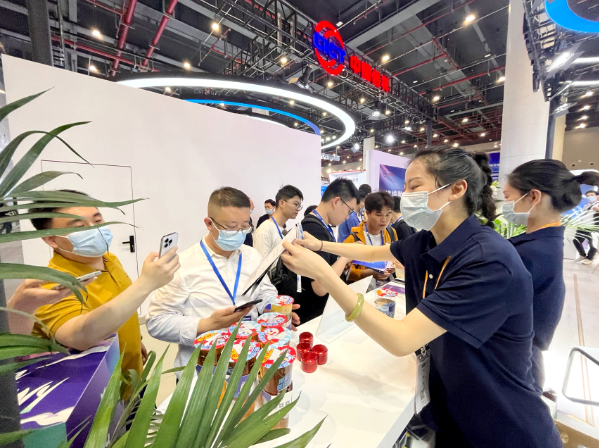 在互動區(qū)域,前來看中國芯、品中國茶的客戶在現(xiàn)場排起了長隊(duì),作為中央企業(yè),AG8旗艦廳科技大力支持鄉(xiāng)村振興,并面向光博會觀眾推介農(nóng)家綠茶,觀眾看完自研光芯片,再來一罐綠茶,直呼體驗(yàn)太過癮。